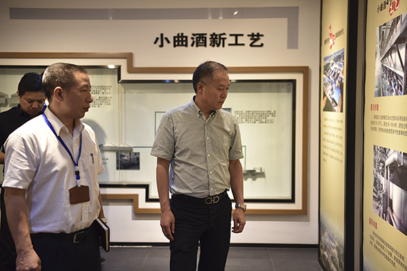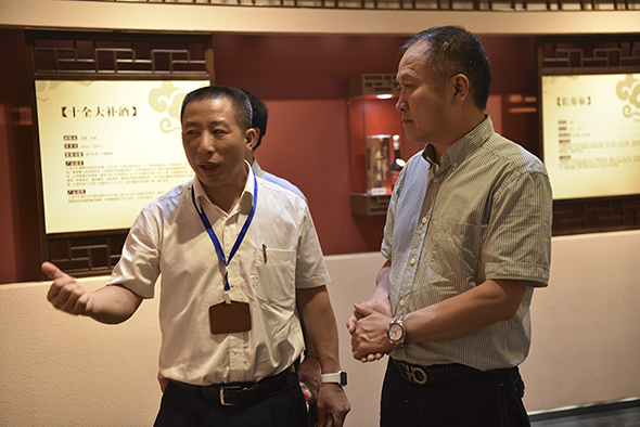 在勁牌展館內(nèi),接待人員講解了企業(yè)規(guī)模及發(fā)展歷程,并著重介紹了公司小曲釀造新工藝深山優(yōu)質(zhì)泉水泡糧,機(jī)械化生產(chǎn)糧食全程不沾地,廢糟循環(huán)再利用的全過程。在了解了勁牌釀造所用泉水富含多種礦物質(zhì),達(dá)到直接飲用水標(biāo)準(zhǔn)后,馬占軍董事長現(xiàn)場給予了“好水釀好酒”的贊許。