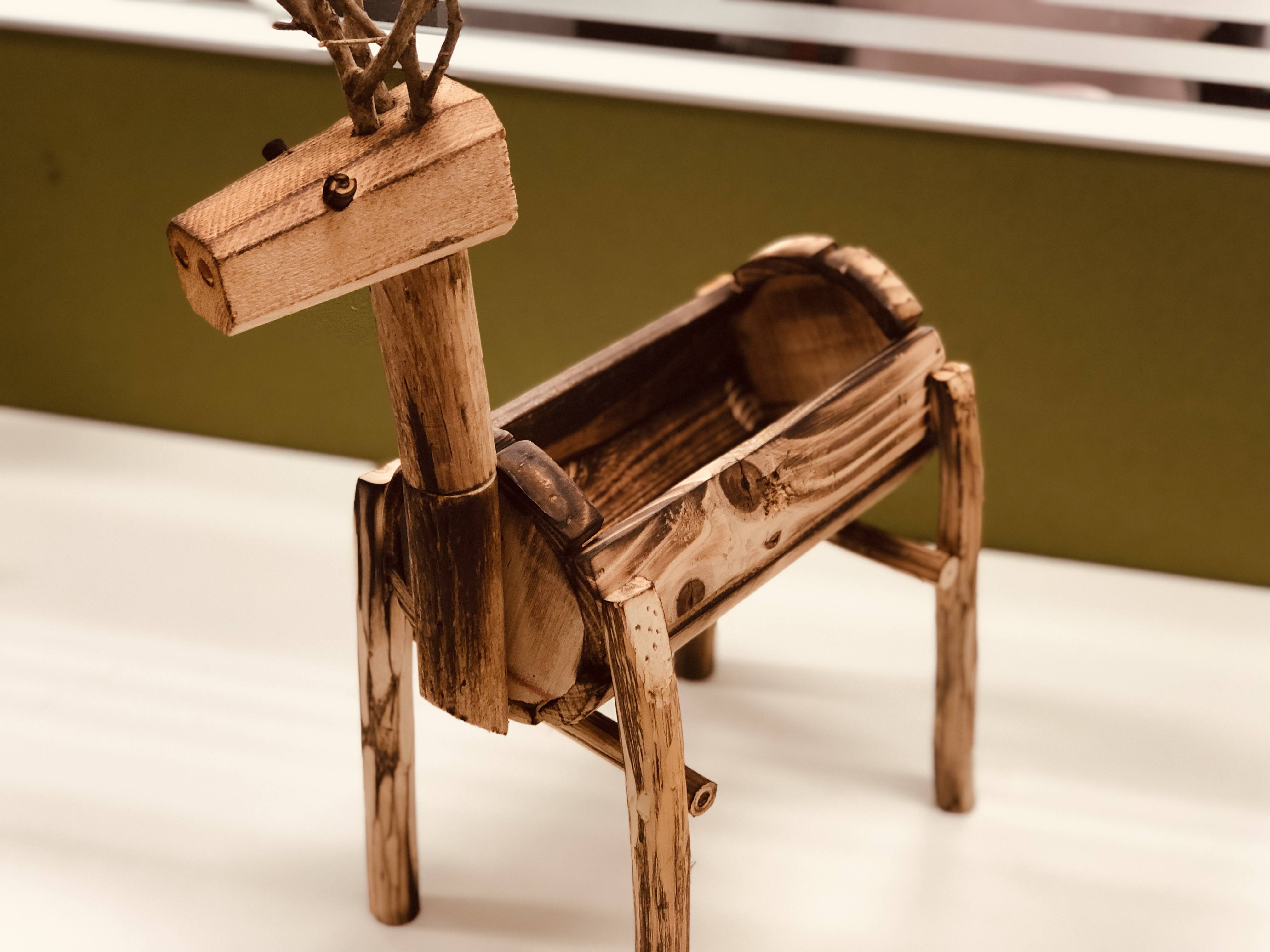 提取一車間吳海秋的手工作品——鹿,用木塊、木板拼出了一個(gè)呆萌可愛的小動(dòng)物,可愛中又不失靈動(dòng)。