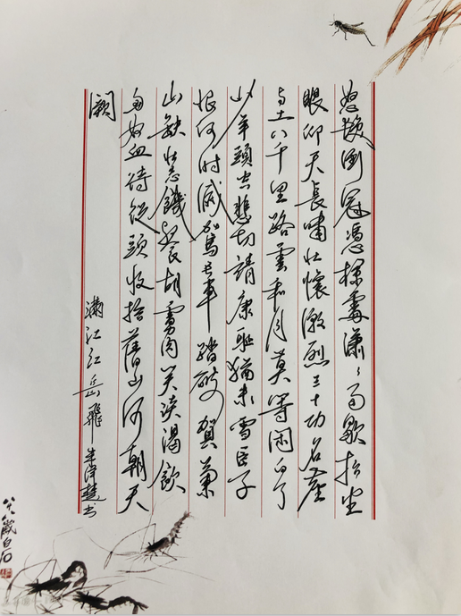 提取三車間張麗萍的繪畫作品——山行,則用素描的手法,展現(xiàn)了山野、林間的別樣意境。制劑車間朱澤楚的書法作品——滿江紅,大氣工整,既有作品文字的美,更致敬了英雄岳飛的家國情懷。