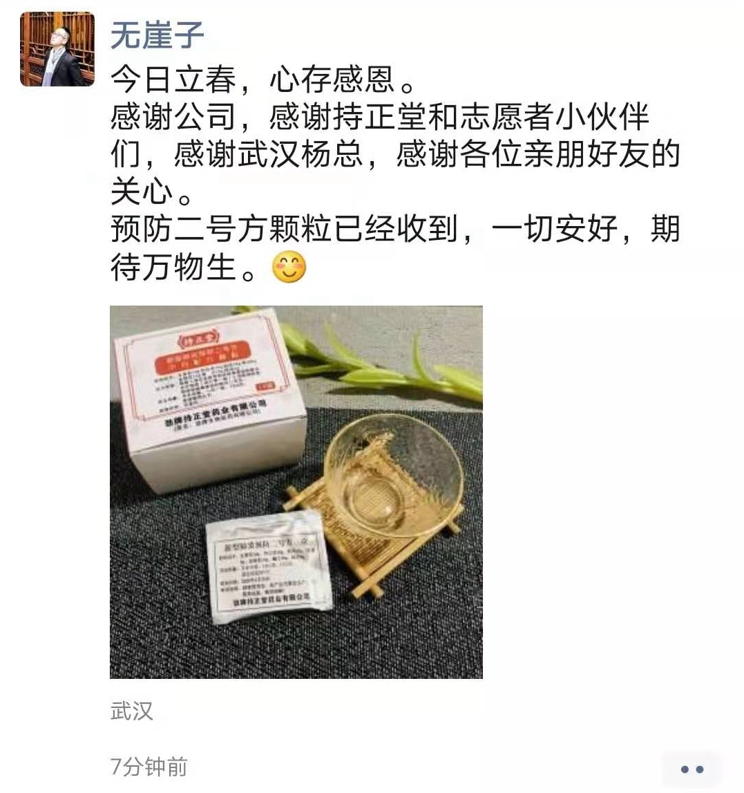 公司在第一時間決定向湖北各大醫(yī)院捐贈不低于5000萬元的預防新型肺炎預防中藥配方顆粒時,當時決定優(yōu)先使用于疫區(qū)各醫(yī)院的醫(yī)護人員及工作人員,把真愛率先送給更需要的人。