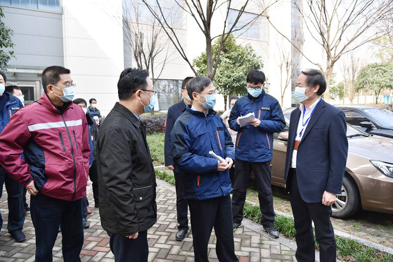 江蘇省政府副秘書長、前方指揮部副總指揮趙建軍,江蘇省支援黃石醫(yī)療隊隊長、前方指揮部副總指揮魯翔和黃石市、區(qū)相關(guān)領(lǐng)導(dǎo)陪同檢查。